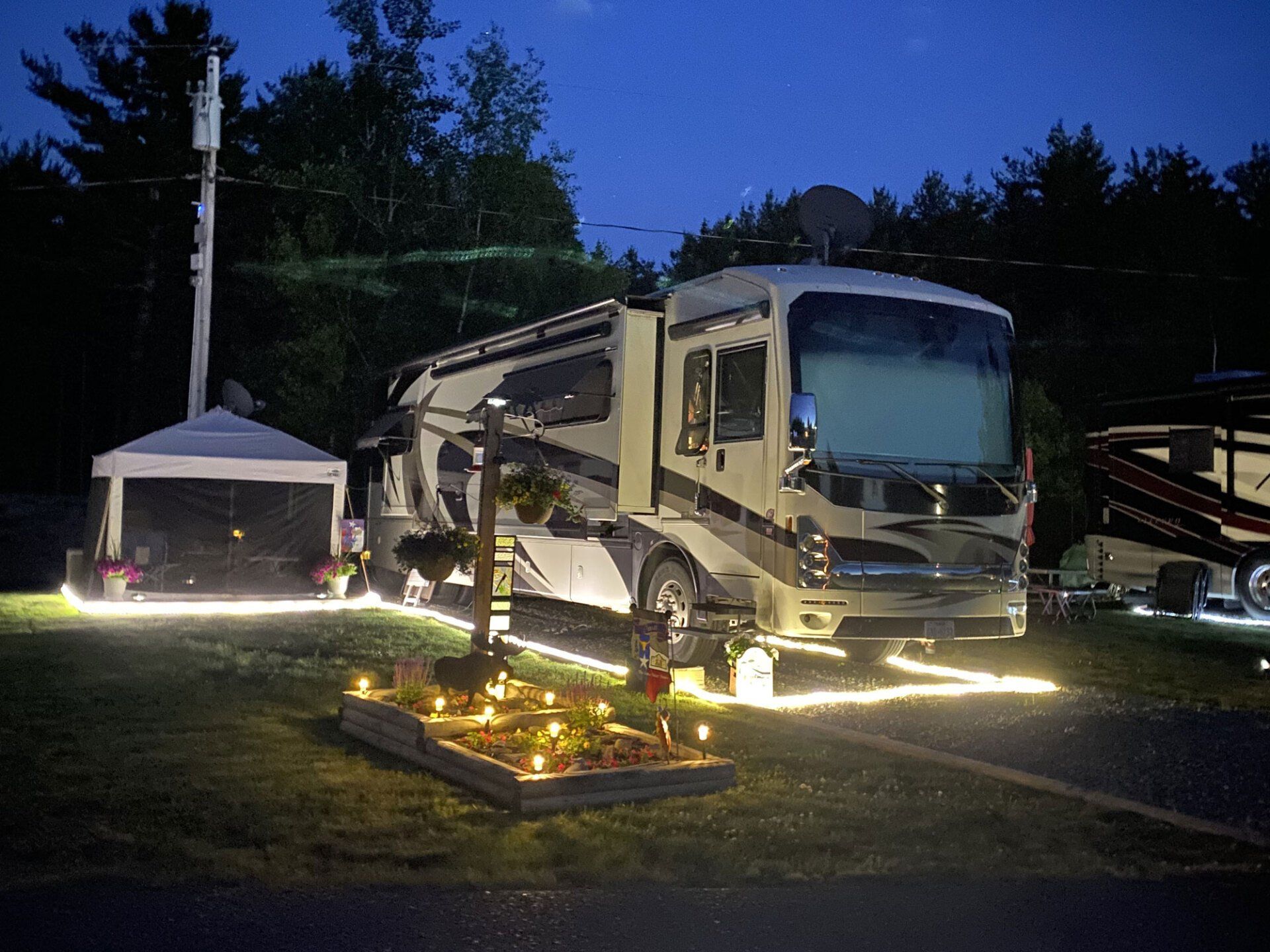 Our RV park offers a pavilion for guests, a playground, dog park, basketball court, lobsters for sale (live or cooked), corn hole, golf cart rentals, arcade, heated swimming pool, and planned activities throughout the camping season to include children’s activities, July 4th decorating contest, Christmas in July, Halloween in September, game nights, and so much more!
